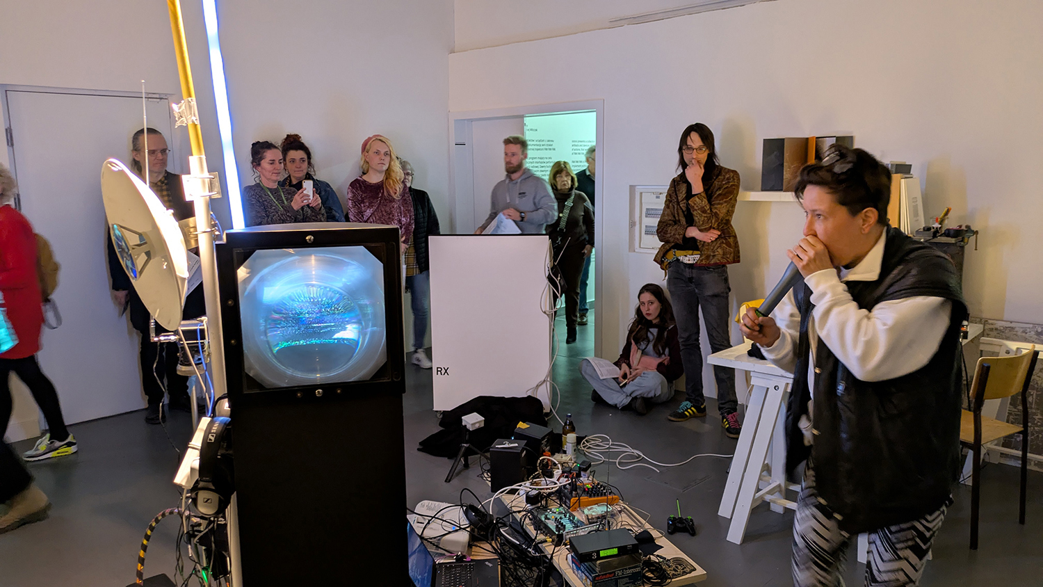 The exhibition "Trigering Electro-Inducing Spasms", has been developed by technofeminist performer Marthe Van Dessel with constellation ooooo, as part of the artist's residency with the TEKHNÉ – Be Aware of Sound program.