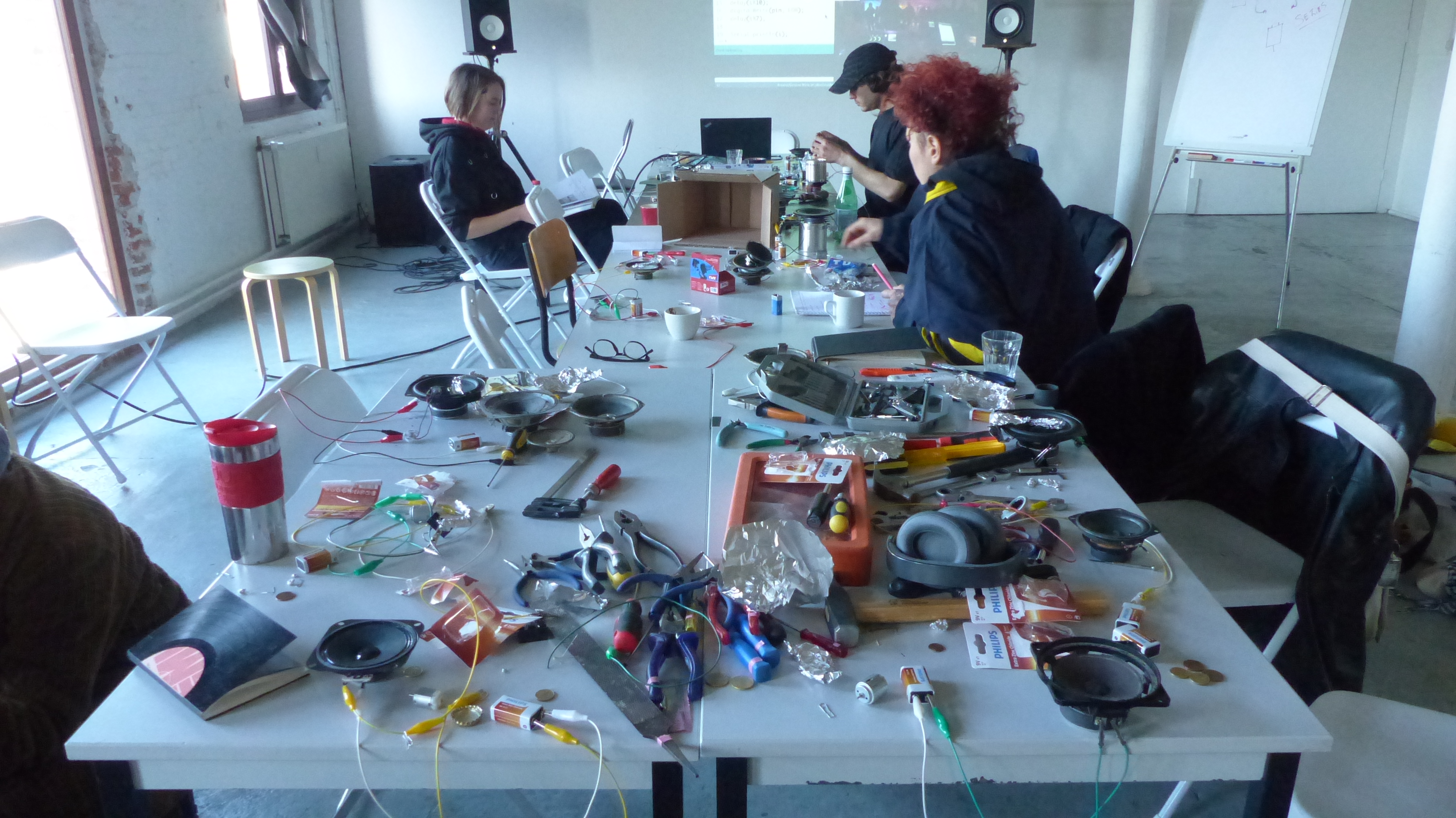 In this workshop we will experiment with the electronic circuits as materials for experimental artistic practices. Making use of simple alligator clips and batteries, we’ll modify and hack scrap speakers and motors, turning them into synthesizers, percussion instruments, and kinetic sculptures …